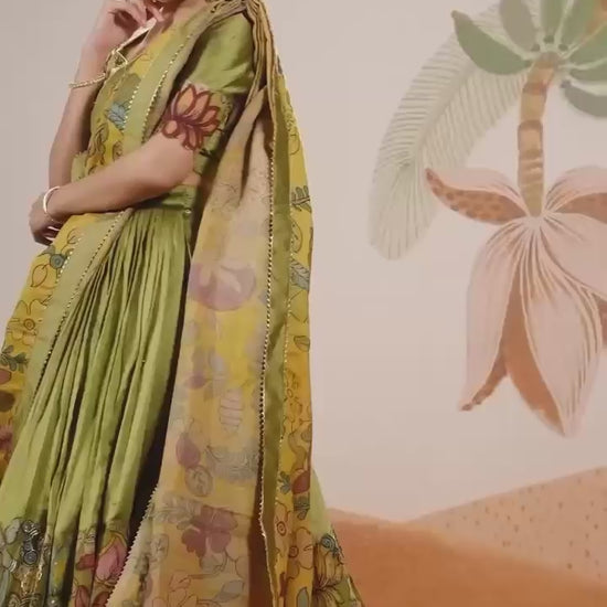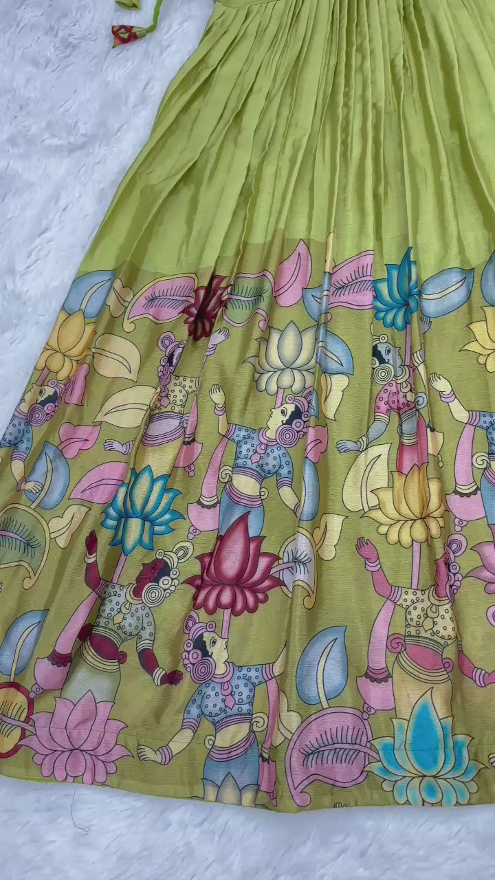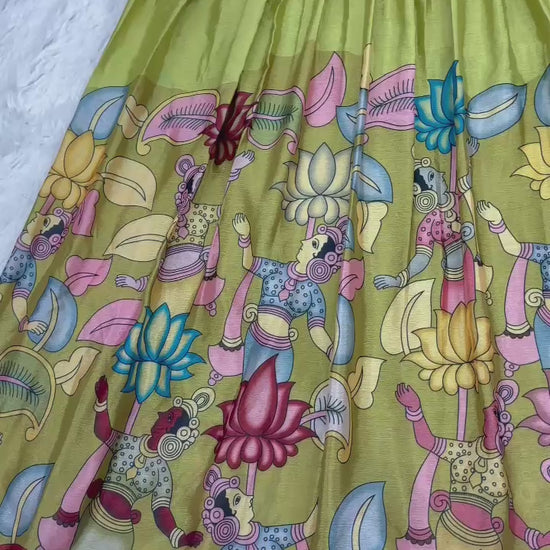 🌿 Elegant Pista Green Kalamkari Lehenga – Traditional Charm with Modern Grace