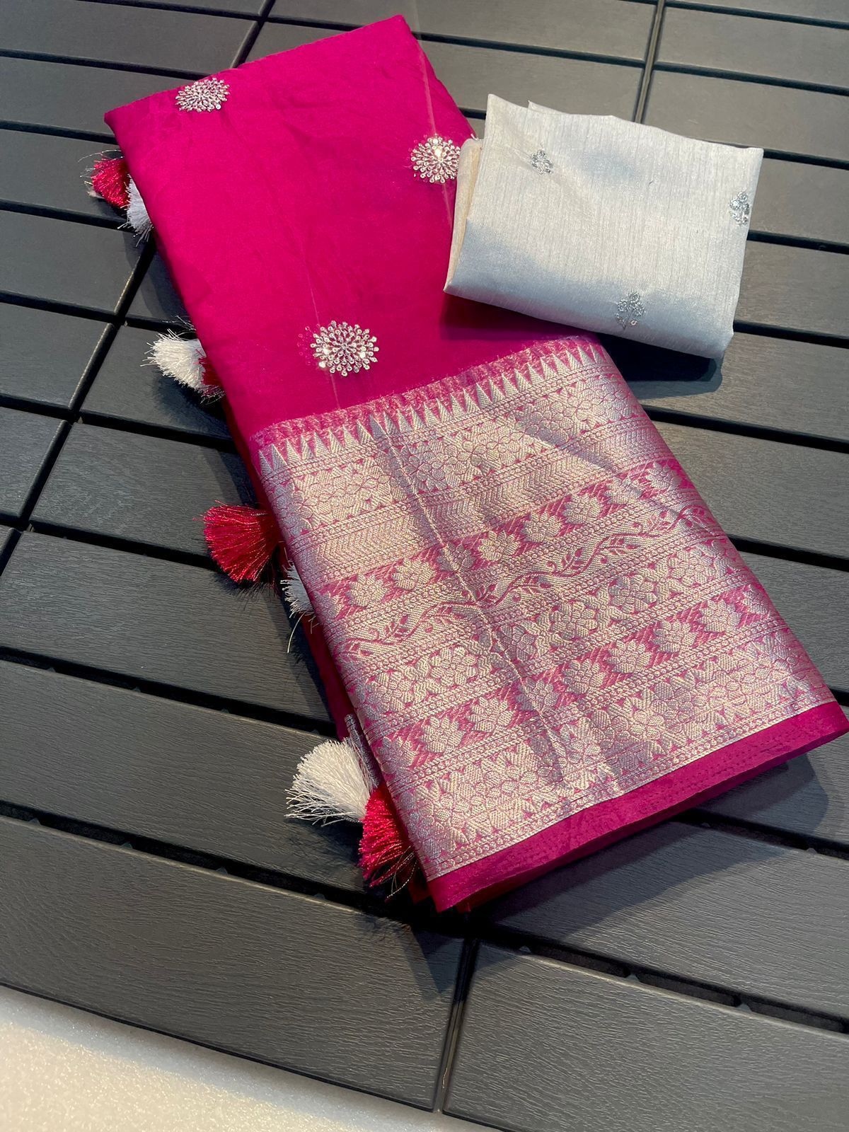 Festive & Party Wear Dark Pink Kanchipuram Organza Saree with Sequin Work Blouse