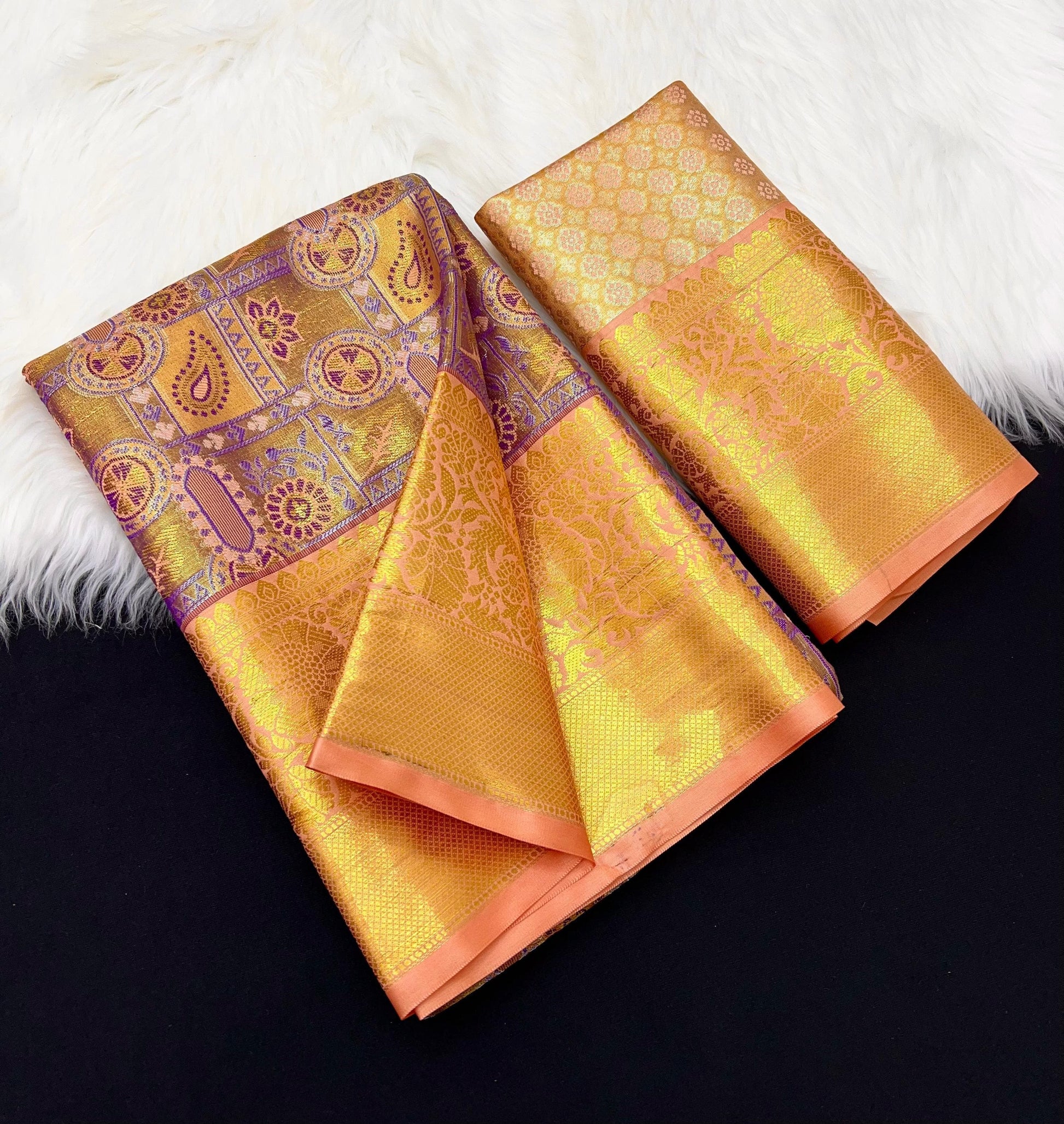 Luxury Mustard & Purple Kanjivaram Silk Saree with Rich Brocade Blouse